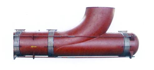 曲管壓力平衡型膨脹節(jié)的前部(通道端)有兩個(gè)工作波紋管,可以吸收來自彎管段產(chǎn)生的橫向位移;后部(平衡端)有一個(gè)平衡波紋管,曲管壓力平衡型波紋管可以吸收來自直管段的軸向位移。當(dāng)彎管段產(chǎn)生橫向位移時(shí),大拉桿上球螺母繞球面墊圈轉(zhuǎn)動(dòng),同時(shí)大拉桿承受內(nèi)壓的推力,因此波紋膨脹節(jié)常用于泵、罐、壓縮機(jī)、汽輪機(jī)出口處,以減少對(duì)上述設(shè)備的作用力。
